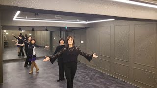 1-2Step left forward, pivot ½ right transferring weight on to right (9:00)