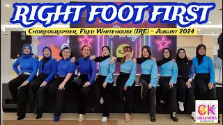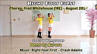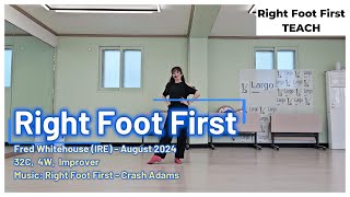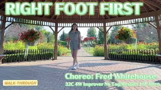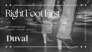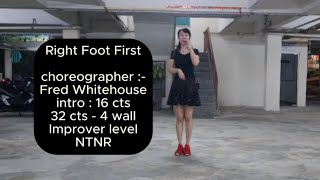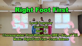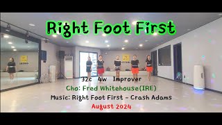 Right Foot First er en 32/4 improver linedance, energisk, moderne og med en legende vibe. Den er let tilgængelig, men byder stadig på små udfordringer, som gør den sjov og musikalsk tilfredsstillende for improvere.