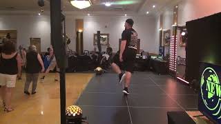 [9 – 16] ¼ Turn Side Step, Back Rock, ¼ Turn Side Step, Back Rock, Step Side with Sweep, Behind, Side, Cross, Curving ¾ Runaround
