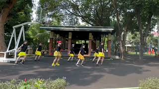 5-6Cross R behind L sweeping L from front to back (5), Cross L behind R sweeping R front front to back (6) 9:00