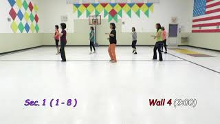 STEP-KICK, INSIDE ½ TURN LEFT, STEP-RONDÉ, CROSS, INSIDE ¼ TURN LEFT, SIDE, HOLD 1-2(S&) Step left forward, kick right forward 3-4(QQ) Step right back (TTI), turn ½ left and step left forward Begin the ½ turn with a ½ turn on count 3, then finish it with an additional ¼ turn on count 4 5-6(S&) Step right forward, sweep left back to front 7-8(QQ) Cross left over right, step right back (TTI) 1-2(S) Turn ¼ left and step left to side, hold Begin the ¼ turn with a 1/8 turn on count 8, then finish it with an additional 1/8 turn on count 1
