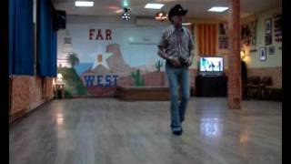 ROCK RIGHT, ROCK LEFT, STEP RIGHT, HOLD, ¼ TURN RIGHT, ½ WALKAROUND 3-4(QQ) Step right in place, step left in place 5-6(S) Step right to side (TTO), hold 7-8(QQ) Turn ¼ right and step left forward, turn ½ right and step right forward