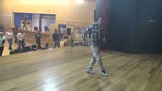 Stomp, Bounce x3 1/2L, 3 Walks Back, Rick R back