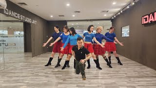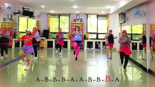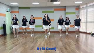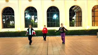 5-6-7-8Step L,R,L back (5-6-7), Kick R foot back (8),