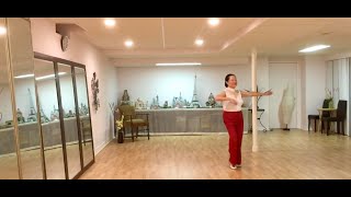 1 2 & 3 4Cross R over L [1] Hold [2] Step L to left side [&] Touch R heel to right diagonal [3] Hold [4] (body facing 10.30) 10:30