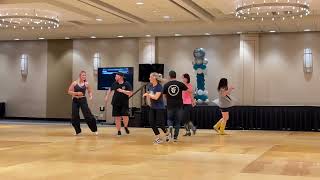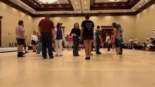 All steps will remain the same and allow you to move 1 partner to the left on the last 4 counts of the dance.