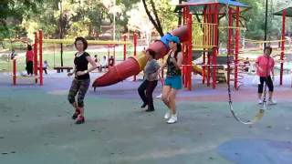 1/4 turn R, side touches and crosses x2, Jazz box with a 1/4 turn R, kick L