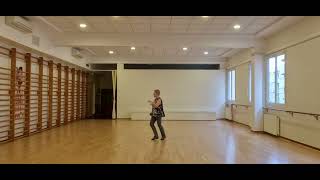 8&8) Tiny step R forward; &) Turn 3/4 left on R spiraling L in front of R [3:00]