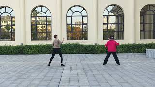 4&54) Kick L forward; &) Step L beside R; 5) Point R to right torquing body left