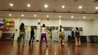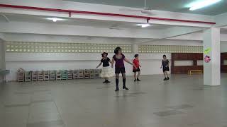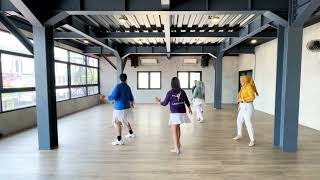 1-2&31) Step L behind R lifting R knee; 2) Step R behind L; &) Step L to left; 3) Step R across L