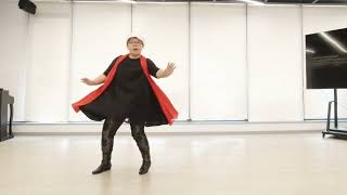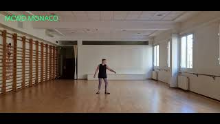 7-87) Turn ¼ left on L pressing R to right; 8) Repeat count 7 taking weight on R [9:00]