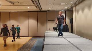 1-21) Angle body slightly left, rock R to right pushing hip back/right; 2) Recover to L