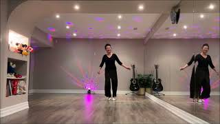1-4Making 1/8 turn R cross R over L, step back on L, step R to R side, step forward on L.