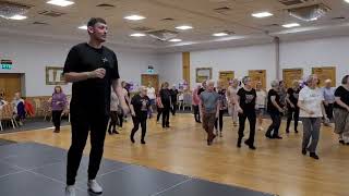 78Walk fwd R towards 10:30 (7), Make ¼ turn L (weight fwd on L) (8) ready to start Wall 6 walking towards 7:30