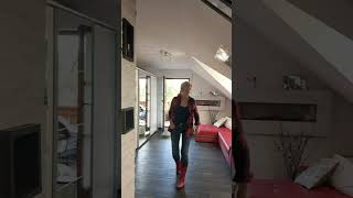 7&8Sprung nach hinten mit rechts / linken Fuß nach vorn kicken - Sprung zurück auf den linken Fuß und rechten Fuß neben linkem aufstampfen (ohne Gewichtswechsel )