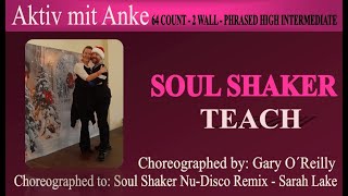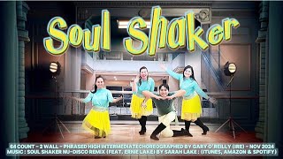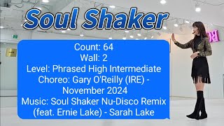 "Soul Shaker" er en 64/2 line dance på high intermediate niveau med en fraseret struktur. Den er koreograferet af Gary O’Reilly og danses til "Soul Shaker Nu-Disco Remix" af Sarah Lake featuring Ernie Lake som er velklingende "svømme ud" pop. Gary O’Reilly er en anerkendt line dance-koreograf og instruktør fra Irland. Han begyndte at danse allerede som 6-årig og har siden udviklet sig til en fuldtidsprofessionel inden for linedance. Gary er kendt for et utal af populære danse som de fleste kender. Han har modtaget adskillige priser ved Crystal Boot Awards i Blackpool, Storbritannien, herunder for "Male Personality", "International Choreographer" og "International Instructor". "Soul Shaker Nu-Disco Remix" er en energisk remixversion af Sarah Lakes originale sang, tilføjet med nu-disco-elementer af Ernie Lake. Sangen kombinerer moderne disco-rytmer med soulfulde vokaler, hvilket gør den velegnet til linedance.