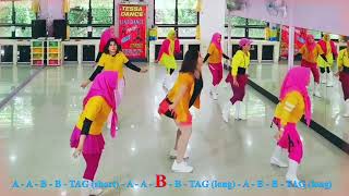 (add two claps over R shoulder at the end of the 2nd, 4th & 5th A on a count “&8” as you’re finishing section 4)