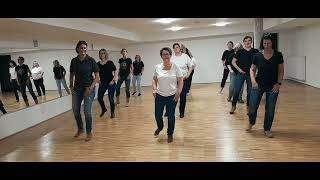 STEP, TOUCH, CROSS, TOUCH, CROSS, STEP BACK, TURN ¼, TOUCH 1-2Step left forward, touch right toe to side 3-4Cross right over left, touch left toe to side 5-6Cross left over right, step right back 7-8Turn ¼ left and step left forward, touch right together