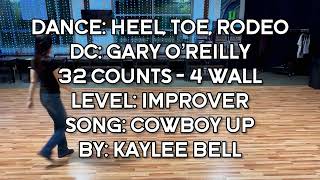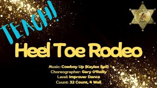 "Heel, Toe, Rodeo" er en 32 counts, 4 wall line dance på improver-niveau, koreograferet af Gary O’Reilly fra Irland i november 2024, Gary er en anerkendt line dance-koreograf og instruktør. Han begyndte at danse som 6-årig og har siden udviklet sig til en fuldtidsprofessionel inden for linedance. Gary er kendt for populære danse som "Love Remains", "Slowly, Gently, Softly", "Celtic Duo" (sammen med Maggie Gallagher), "Vanotek Cha" og "Marakaibo". Han har modtaget adskillige priser ved Crystal Boot Awards. Dansen er koreograferet til sangen "Cowboy Up" af Kaylee Bell. Cowboy Up er en kvik kontant country-pop-sang af den newzealandske sangerinde Kaylee Bell. Sangen kombinerer traditionelle countryelementer med moderne pop. Sangteksten opfordrer til at tage udfordringer op med mod og beslutsomhed. Kaylee Bell er en newzealandsk sanger og sangskriver. Hun begyndte at synge som fireårig og vandt NZ Gold Guitar Award som 18-årig. Hendes debutalbum, "Heart First" vandt prisen for bedste countryalbum ved New Zealand Music Awards i 2014. Kaylee Bell er kendt for sin evne til at blande traditionelle countryelementer med moderne pop, hvilket har gjort hende til en af de mest streamede kvindelige countrykunstnere i Australasien.