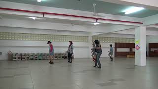 1,2,3,4Step out L (1), cross behind with R (2), step out L (3), touch with R (4)