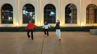 Jump Forward w/ Clap, Jump Back, w/ Clap, Step 1/2 Pivot x2