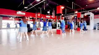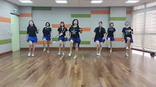 Step Side, Knee Pop, Step Side, Knee Pop, 1/4 Forward, Step 1/2 Pivot, Step Forward