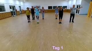 TAG (1) Section 1: (DANCERS ON RIGHT SIDE OF DANCEFLOOR): OUT, OUT, IN, IN, DRAG, TOGETHER 1 2Step diagonally forward on R heel (1), step diagonally forward on L heel (2) 3 4Step R back in to centre (3), step L next to R (4) 5 6Long step forward R on very slight R diagonal starting to drag L (5), continue dragging L (6) 7 8Continue dragging L (7), step L next to R (8) *only dancers on R half of the dancefloor dance this section while L half wait