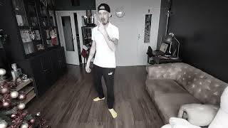 Section 4: “THE GUYTON” & PRESENT 1 2Clap hands (1), slide R hand up along L hand and let it fall across L hand with R palm now facing the back of your L hand (2) 3 4Slide the tips of fingers of both hands along opposing arm until you reach opposing elbows (3), slide back into original position (4) 5 6With both palms facing up open hands out into a presenting or welcoming pose over 4 counts (5,6,7,8)