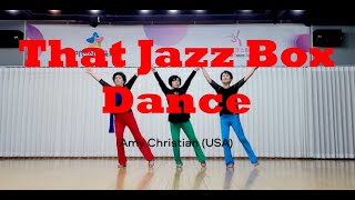 That Jazz Box Dance er en enkel og musikalsk 32/2 absolute beginner-linedance med fokus på basistrin som jazz box og lette drejninger. Den fungerer både som introduktion til linedance og som et sjovt indslag på sociale gulve.