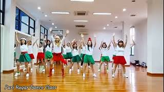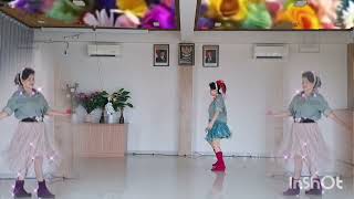 1,2RF step right and bump R hip right (1), Bump L hip left (2).