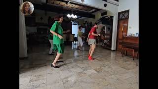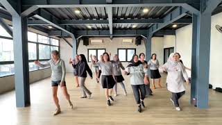 Section 4 Syncopated Rocks Fwd ¼ Right, Out, Out, Clap, Out, Out, R Touch Together.