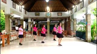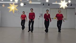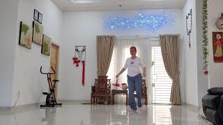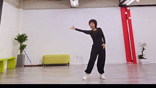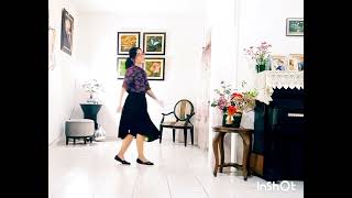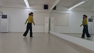 5-8Turn ¼ Left step LF forward ,Turn ½ Left step RF back, Step LF back ,Touch RF together