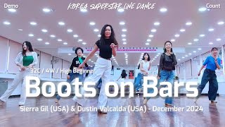 Fed superdans direkte ind som nummer 29 på Copperknob. "Boots On Bars" er en 32 counts, 4 wall linedance på high beginner-niveau, koreograferet af de amerikanske koreografer Sierra Gil og Dustin Valcalda i december 2024 til sangen "Boots on Bars" af Moonshine Bandits. Sierra Gil har koreograferet 12 danse, hvoraf 11 er co-koreograferet. Hendes seneste er "Boots on Bars" fra december 2024. Hun har for nylig haft en dans i top 10 med "Had Some Help" også koreograferet sammen med Dustin Valcalda, som har koreograferet 33 danse, hvoraf 15 er co-koreograferet. "Boots on Bars" er en energisk countryrap-sang af den amerikanske duo Moonshine Bandits. Sangen er lige udgivet og tordner op af hitlisterne og krydrer allerede nattelivet verden over. Sangen kombinerer country-grit med hiphop-beats og højoktan energi, hvilket gør den vildt god til line dance. Moonshine Bandits er en amerikansk countryrap-duo bestående af Dusty "Tex" Dahlgren og Brett "Bird" Brooks. De blev dannet i 2003, og er kendt for at blande countrymusik med rap og rockelementer.