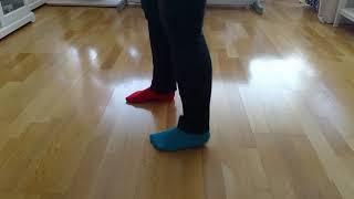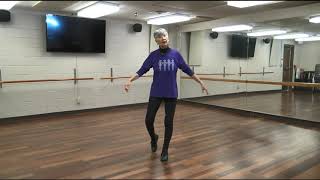 9 & 10 Touch Right heel forward, step Right down, step Left forward
