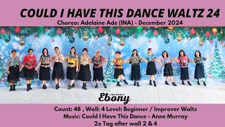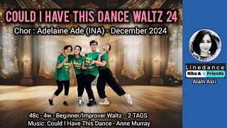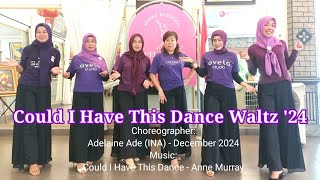 En skøn rolig vuggende 48 counts 4 wall beginnner/improver linedance waltz, koreograferet af Adelaine Ade fra Indonesien i december 2024 til Anne Murrays klassiske sang "Could I Have This Dance". Adelaine Ade har koreograferet over 50 danse, både solo og sammen med andre. Hendes 1. dans var "Uno" fra april 2020. Could I Have This Dance er en tidløs countrywaltz fremført af den canadiske sangerinde Anne Murray. Sangen blev udgivet i 1980 og var en stor succes, hvor den toppede på de amerikanske country-hitlister. Den blide melodi og den rørende tekst gør den lækker til linedance. Anne Murray er kendt for sin klare stemme og evne til at forene forskellige musikgenrer, hvilket har indbragt hende adskillige priser, herunder fire Grammy Awards