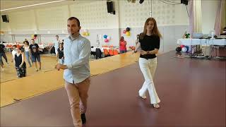 1-2Step R Diagonal fwd (1), Step L close on R (2)