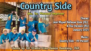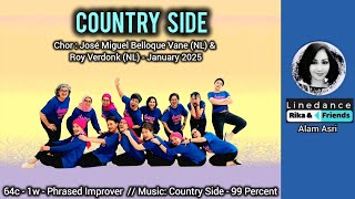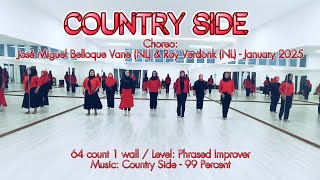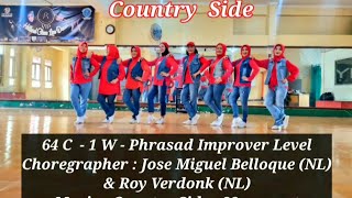 Country Side er en 64-count, phrased, 1-wall dans på improver-niveau. Den indeholder i alt 6 sektioner og giver god mulighed for at arbejde med musikalitet og attitude – især til country med kant.