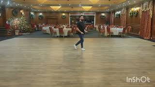 1 – 2Step Right forward. Pivot 1/2 Left (keeping weight on Right) touching Left toe across Right. (6.00)