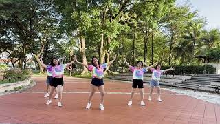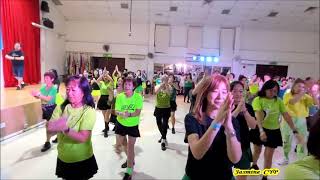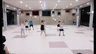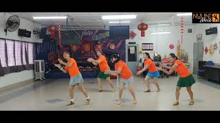 6-7Clap above head, turn ¼ left recovering weight to left clap forward (9:00)