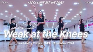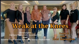 Weak At The Knees er en 32/4 intermediate linedance med et moderne, flydende flow og små tekniske detaljer, der gør den både udfordrende og musikalsk tilfredsstillende at danse.