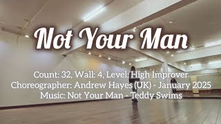 Not Your Man er en medrivende 32-count, 4-wall linedance på high improver-niveau, koreograferet af Andrew Hayes fra Storbritannien i januar 2025. Dansen kombinerer hurtige trinsekvenser med en masse elegante holdtakter, der afspejler musikkens intense og kontant beat og et moderne præg. Andrew Hayes er en anerkendt koreograf fra Storbritannien, kendt for sin evne til at skabe danse, der balancerer teknisk finesse og kreativitet. Hans koreografier er musikalsk harmoniske og appellerer til dansere, der ønsker noget udfordrende. "Not Your Man" er et kraftfuldt nummer af Teddy Swims. Sangen er fyldt med emotionelle vokaler, en intens melodi og en rytme, der giver dansen en perfekt balance mellem energi og følelse. Musikken er dramatisk med en følsomhed, der rammer lytteren. Teddy Swims er en amerikansk sanger og sangskriver kendt for sin sjælfulde stemme og evne til at blande pop, soul og R&B. Hans musik er præget af stærke tekster og en autentisk følelsesmæssig dybde. "Not Your Man" er et fremragende eksempel på hans talent og passer perfekt til linedance, der kræver både stil og udtryk.