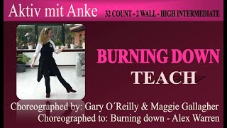Burning Down er en kraftfuld 32-count, 2-wall linedance på intermediate-niveau, koreograferet af Maggie Gallagher fra Storbritannien og Gary O’Reilly fra Irland i februar 2025. Dansen kombinerer følelsesladede bevægelser med hurtige dynamiske trinsekvenser, der fanger musikkens intense opbygning og melodiske flow. Den passer perfekt til dansere, der nyder en dans med både energi og dybde. Maggie Gallagher og Gary O’Reilly er to af de mest anerkendte koreografer i linedance-verdenen. Maggie er kendt for sine musikalsk harmoniske koreografier, mens Gary har en evne til at skabe danse, der er både teknisk udfordrende og utroligt dansable. Sammen har de skabt mange populære danse, og Burning Down er endnu et stærkt bidrag til deres imponerende repertoire. "Burning Down" er et følelsesladet nummer af Alex Warren. Sangen er bygget op om en stærk vokalpræstation, en melankolsk, men kraftfuld melodi og en rytmisk intensitet, der skaber en dramatisk og medrivende stemning. Alex Warren er en amerikansk singer-songwriter, der er kendt for sine dybt personlige tekster og sin rå, autentiske vokal. Hans musik blander pop og akustiske elementer med en moderne produktion, hvilket giver en intens og nærværende lyd. Burning Down er et perfekt eksempel på hans evne til at formidle stærke følelser gennem musikken – et ideelt valg til denne linedance.