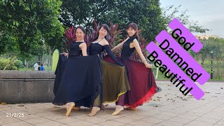 God Damned Beautiful er en intens 16/4 intermediate linedance i rolling count, der kombinerer kraftfulde bevægelser med dramatisk musikalitet. På trods af det korte antal takter er koreografien fyldt med udtryk og kræver præcision, hvilket gør den både udfordrende og fængende.