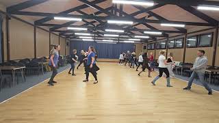 Dance as Contra with opposite lines close together. Dance “with your partner” across from you with right shoulders lined up. This will help with the slide steps.