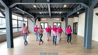 7 8Step diagonally back on L (7), hitch R knee up (slap your knee with R hand) (8)