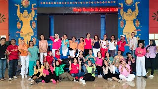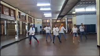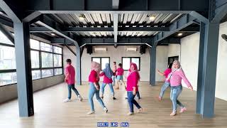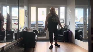 1/4 Forward, 1/2 Back, Coaster Step, Heel Struts w/ Shoulder Touches & Robot Arms