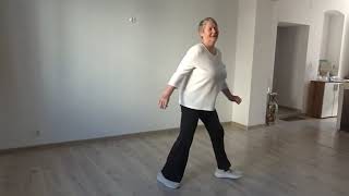 7-8Make 1/4 L stepping L to L (7) [3:00], Touch R next to L (8) *Restart here on Walls 3 & 9