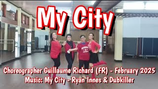My City er en intens 32-count, 2-wall linedance på high intermediate-niveau, koreograferet af Guillaume Richard fra Frankrig i februar 2025. Dansen er præget af kraftfulde bevægelser, markante rytmeskift og en moderne stil, der passer perfekt til musikkens energiske opbygning. Med sit stærke flow og tekniske detaljer er den ideel for dansere, der søger en dynamisk oplevelse. Guillaume Richard er en af Europas mest anerkendte koreografer, kendt for sine kreative og musikalsk harmoniske linedance-kreationer. Hans koreografier er ofte inspireret af moderne pop og urban dansestil, hvilket giver dem et friskt og nutidigt udtryk. "My City" er et kraftfuldt nummer af Ryan Innes & Dubkiller. Sangen har en urban pop-lyd med elektroniske elementer og en dyb, medrivende rytme, der skaber en dramatisk og storladen stemning. Den pulserende beat og stærke vokal gør den perfekt til dans med attitude og præcision. Ryan Innes er med din kraftfulde stemme, kendt for at formidle stærke følelser. Dubkiller bibringer en moderne, elektronisk lydtil nummeret, hvilket giver en dynamisk blanding af soul, pop og EDM. My City er et nummer, der oser af selvtillid og energi.