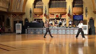 5-6Turn ½ L stepping onto LF (5) (12:00) , Turn ½ L stepping RF back (6) (6:00)