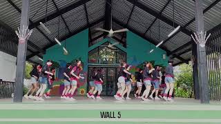 3-4Walk fw. R, kick L fw. (clap on wall 1-2-5-6-10-11) 12:00